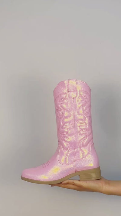 Estas botas vaqueras tubo en color rosa son perfectas para niñas que quieren brillar al caminar. Con detalles bordados y un toque de brillos que las hacen lucir como una verdadera princesa, combinan estilo y diversión en cada paso. Su diseño cómodo y resistente acompaña a las pequeñas aventureras en todas sus travesuras con mucho encanto.