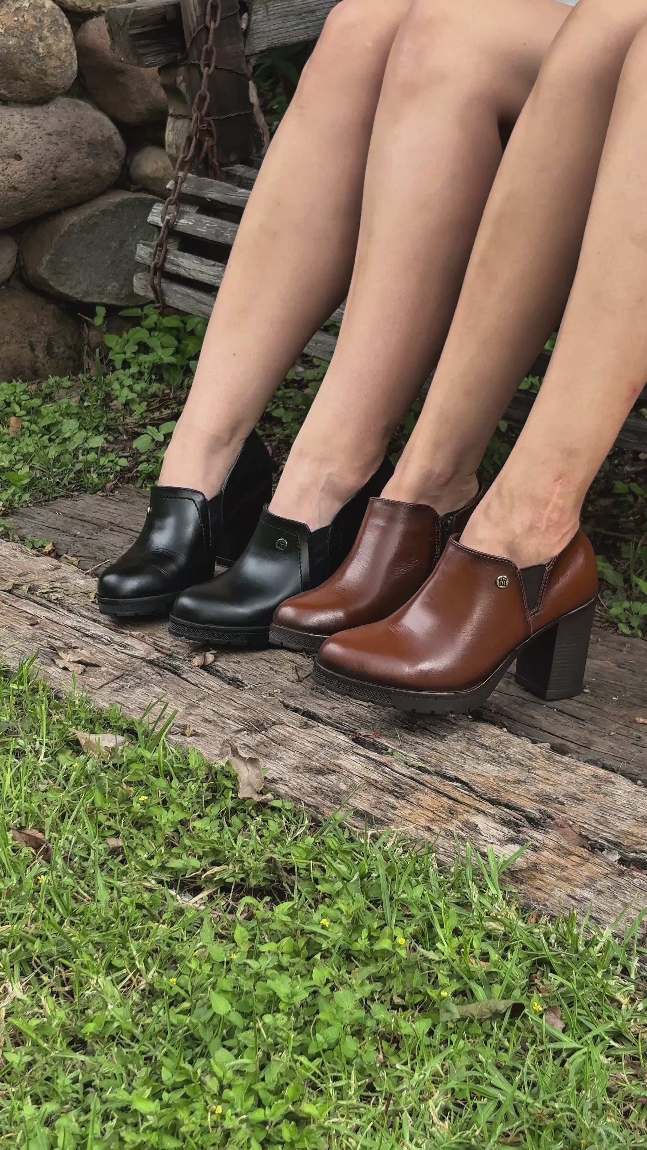 Este botín para dama combina elegancia y comodidad con su diseño en piel negra. Los detalles elásticos a los costados facilitan un ajuste perfecto y cómodo, mientras que el pequeño pin frontal añade un toque refinado y distintivo. Ideal para complementar cualquier outfit con sofisticación y estilo.