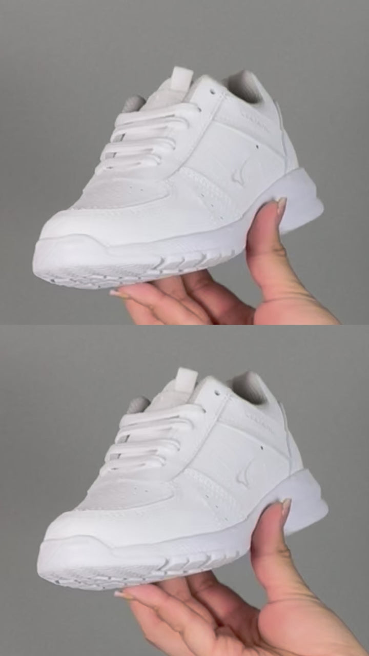 Tenis escolar para niño o niña en piel color blanco (agujeta).