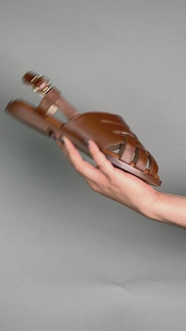 Sandalia de piel para mujer diseñada con comodidad y estilo. Cuenta con hebilla ajustable y tiras cruzadas que se extienden hasta la parte delantera, proporcionando un ajuste seguro y personalizado. La protección en piel en la zona frontal ofrece durabilidad y resistencia al uso diario. Ideal para ocasiones casuales y cómodas, combina funcionalidad con un acabado elegante en tonos tierra.