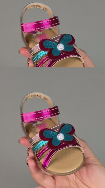 Sandalia Niña 13200 Multicolor Metálico Diseñada para las pequeñas fashionistas, esta sandalia multicolor brilla con detalles metálicos que capturan la luz en cada paso. La adorable mariposa y perla en el diseño añaden un toque mágico y divertido al calzado escolar. El cierre de velcro garantiza un ajuste seguro y fácil de poner, perfecto para niñas activas que necesitan practicidad sin sacrificar estilo. Cómoda, colorida y lista para cualquier aventura del día.
