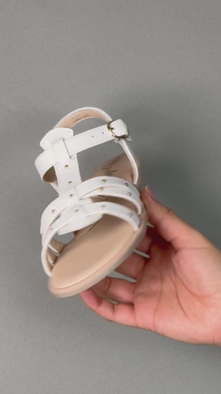 Sandalia infantil confeccionada en piel suave y resistente, diseñada para el confort diario de las niñas. Cuenta con un elegante moño en la parte delantera que añade un toque decorativo y femenino, junto con una hebilla ajustable que garantiza un calce seguro y personalizado. La piel de calidad asegura durabilidad y transpirabilidad, perfecta para los pies en crecimiento.