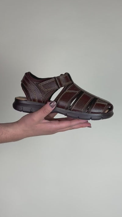 Sandalia cómoda y práctica para niños, confeccionada en piel café de calidad. Diseño con velcro ajustable que permite un calce perfecto y fácil de poner y quitar. Ideal para el día a día o actividades al aire libre. La piel transpirable mantiene los pies frescos, mientras que la suela resistente garantiza durabilidad. ¡Comodidad y estilo en cada paso!
